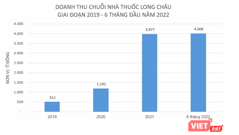 Năm 2019 doanh thu Long Châu đạt 511 tỉ đồng, chỉ chiếm 3% tổng doanh thu của FPT Retail. Đến nửa đầu năm 2022, doanh thu của chuỗi đã lên tới 4.008 tỉ đồng, đóng góp đến 35% doanh thu cho công ty mẹ.
