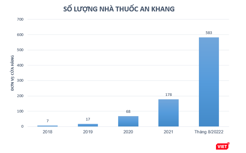 Tại thời điểm 30/6/2022, với số lượng 678 nhà thuốc đang hoạt động trên cả nước thì doanh thu trung bình mỗi cửa hàng là 985 triệu đồng/tháng.