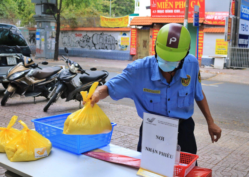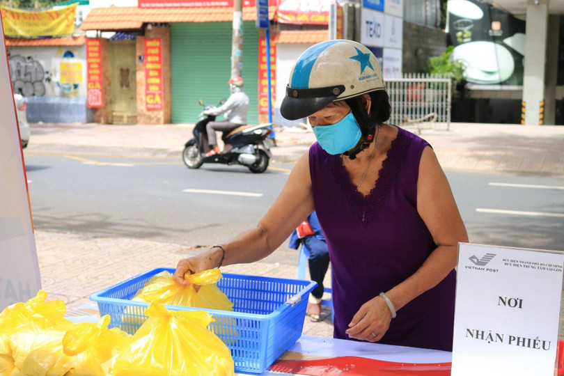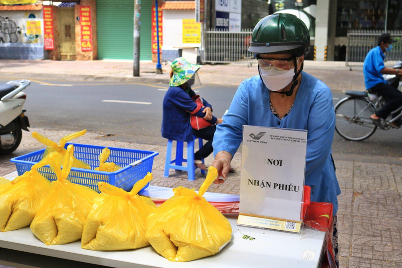 Tại các điểm phát gạo cố định (cây ATM gạo hoặc bàn phát trực tiếp tại bưu cục), bưu điện sẽ tổ chức phân luồng lối đi riêng cho từng người ra - vào nhận gạo để tránh tối đa việc tiếp xúc.