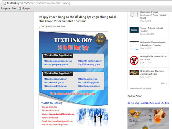 | Hiện nay nhiều đơn vị công khai rao bán trên mạng textlink trên các trang web thuộc Chính phủ (tên miền ".gov.vn") |