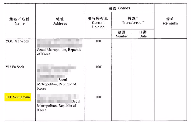Hai cổ đông khác của BC Holdings là Yoo Jea Wook và Yoo In Sook, cùng là người Hàn Quốc.