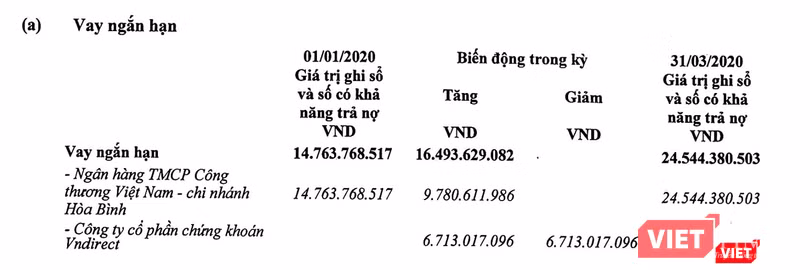 Ở một chi tiết khác, dữ liệu của VietTimes thể hiện, CTCP Chứng khoán VNDirect (Mã CK: VND) đã ‘giải ngân’ cho VCW số tiền 6,7 tỉ đồng và thu hồi ngay trong quý 1/2020.