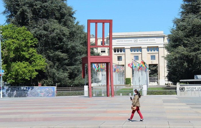 Người dân đeo khẩu trang phòng dịch COVID-19 tại Geneva, Thụy Sĩ. (Ảnh: THX/TTXVN)