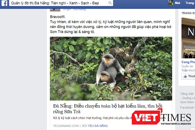 Hay trước đó, ngay sau khi thành viên Tuấn GreenViet đăng thông tin trên facebook liên quan đến việc một nhóm công nhân dựng lán trại, mở đường dài hàng trăm mét thọc sâu vào khu bảo tồn thiên nhiên rừng Sơn Trà để chặt phá rừng trồng cây. Đặc biệt, khu vực chặt phá nằm trong khu vực bảo tồn thiên nhiên, là nơi sinh sống của loài voọc chà vá chân nâu-một trong những loài sinh trưởng nằm trong sách đỏ thế giới đang được bảo tồn.