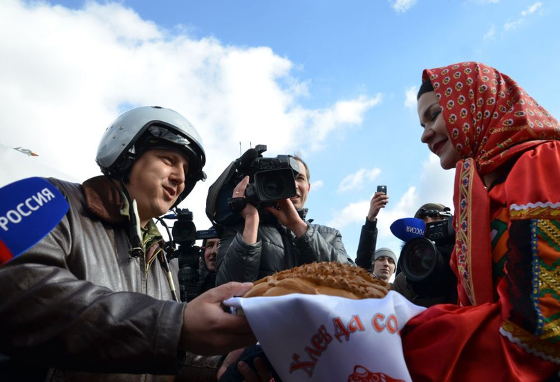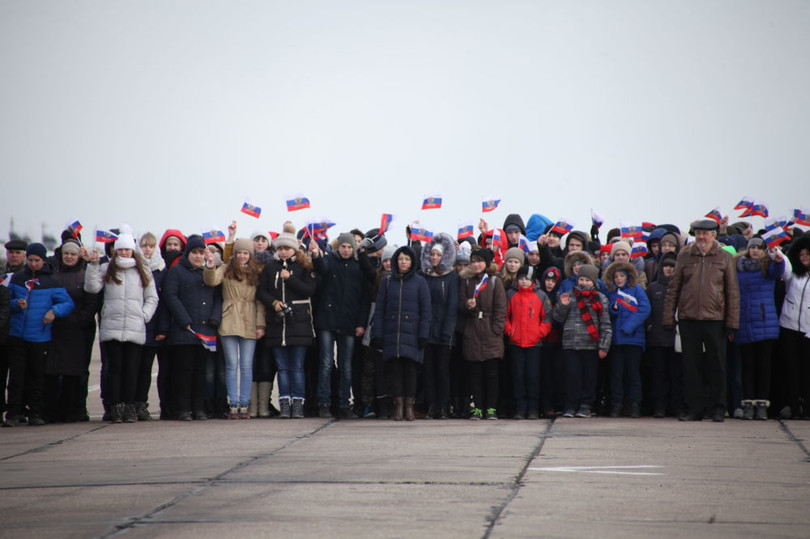 Đón tiếp phi công Nga từ Syria trở về tại sân bay ở tỉnh Voronezh.