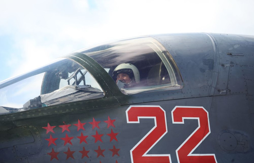 Tổng tư lệnh lực lượng hàng không vũ trụ của Liên bang Nga Viktor Bondarev đón tiếp các phi công đầu tiên trở về sân bay Voronezh.
