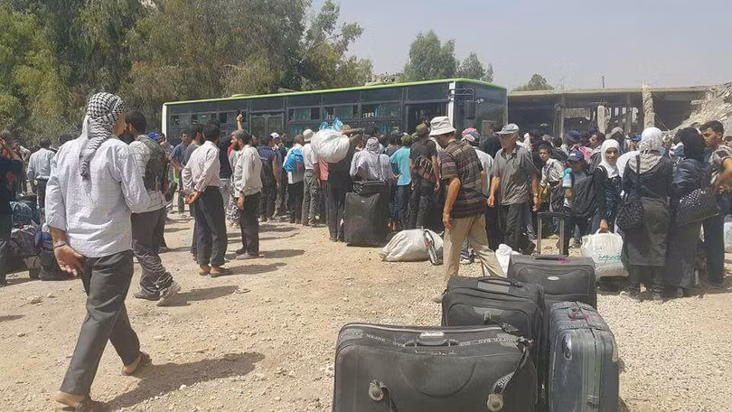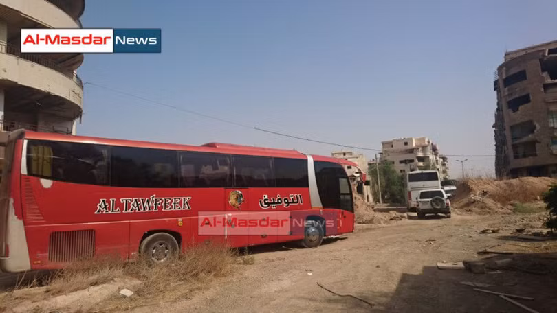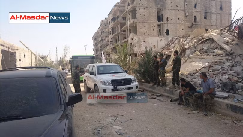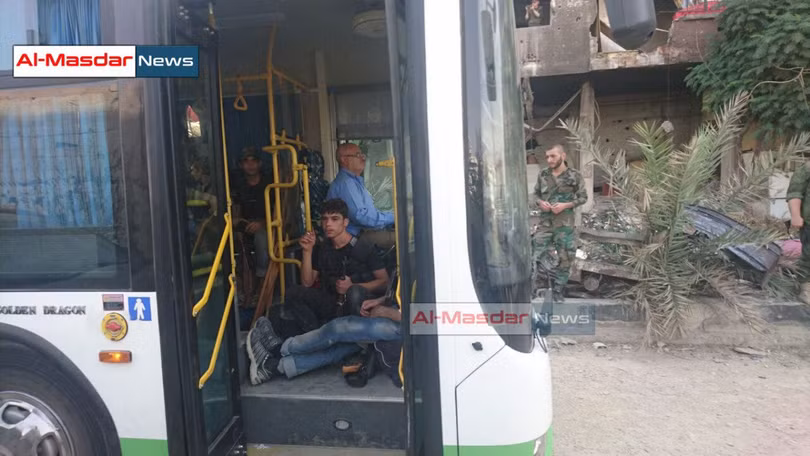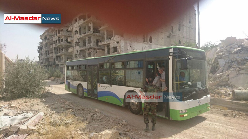 Binh sĩ Syria, người chụp các bức ảnh đang cùng với các lực lượng dân sự chứng kiến sự ra đi của các chiến binh và người nhà của họ đi khỏi Darayya.