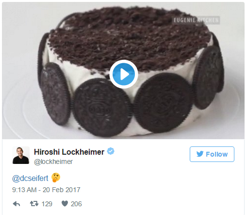 Theo Android Authority, Hiroshi mới đây đã đăng tải bức ảnh GIF lên Twitter với hình ảnh một chiếc bánh kem, xung quanh đính phần mặt của bánh Oreo, bề mặt phía trên cũng là mặt bánh Oreo nhưng đã được xay nhuyễn.
