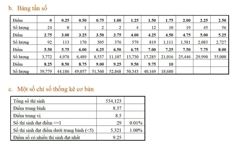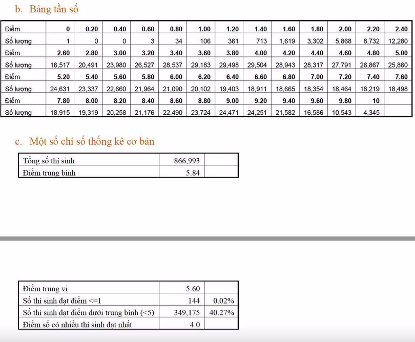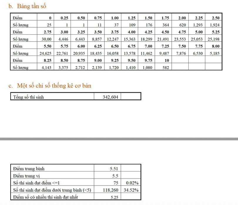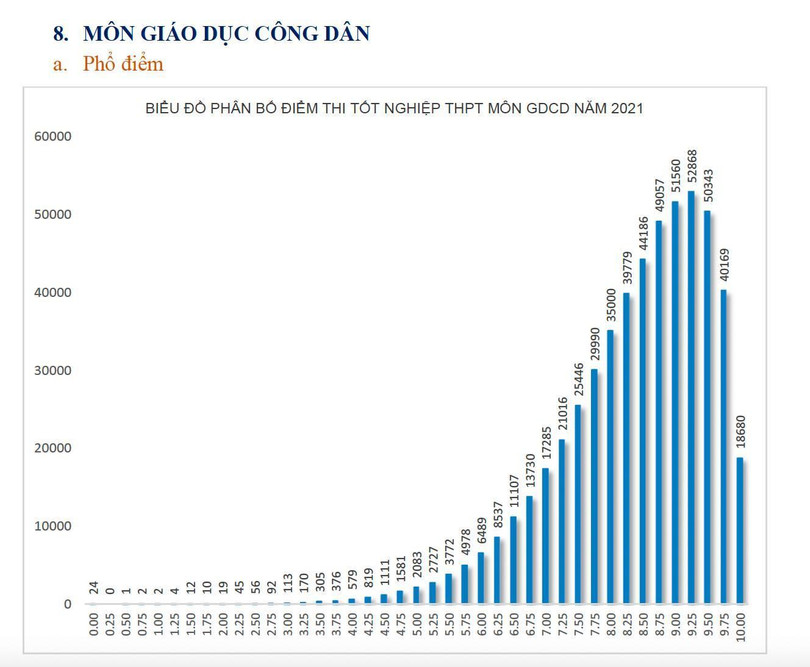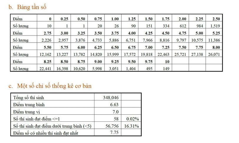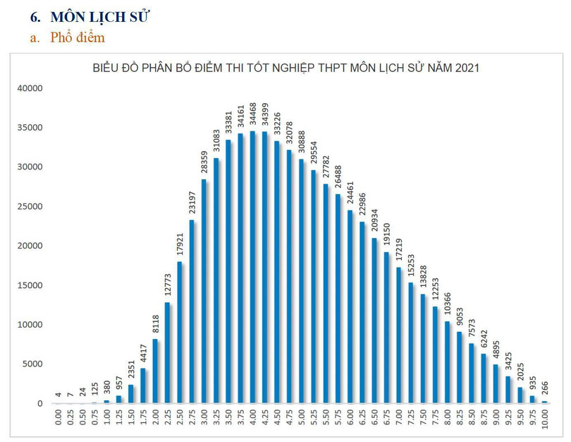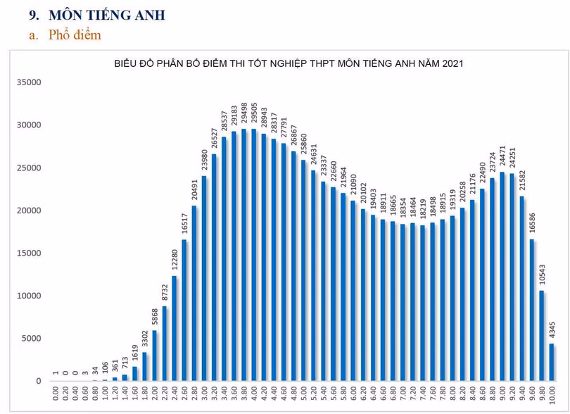 Điểm thi biến động mạnh ở môn tiếng Anh với hơn 4.000 điểm 10. Trong khi đó, môn Lịch sử 'đội sổ' về điểm thi tốt nghiệp với hơn 50% thí sinh có điểm dưới trung bình.