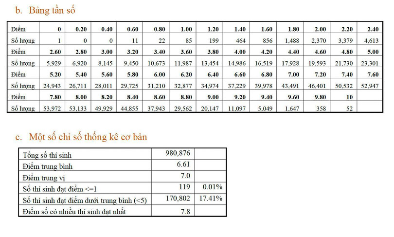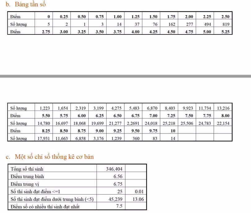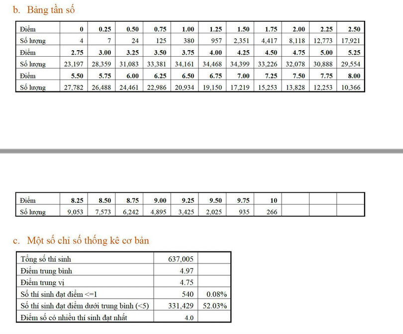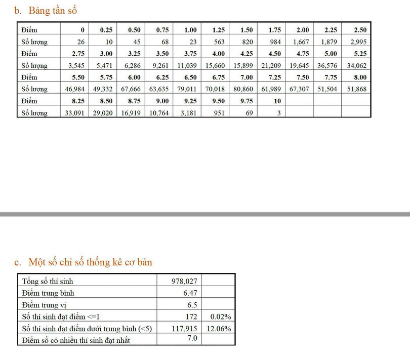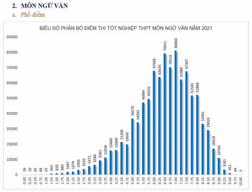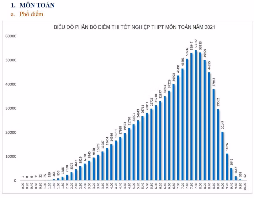 Điểm thi biến động mạnh ở môn tiếng Anh với hơn 4.000 điểm 10. Trong khi đó, môn Lịch sử 'đội sổ' về điểm thi tốt nghiệp với hơn 50% thí sinh có điểm dưới trung bình.