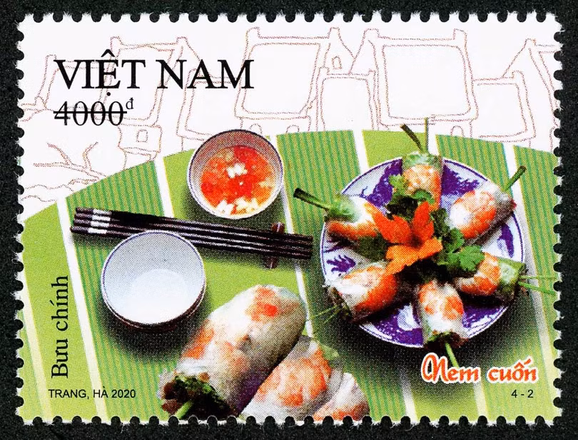 Bộ tem “Ẩm thực Việt Nam” mà Bộ Thông tin và Truyền thông vừa phát hành gồm 04 mẫu, giới thiệu “Phở gà”, “Nem cuốn”, “Bún chả”, “Bún thang” với giá mặt từ 4.000 đồng đến 12.000 đồng.