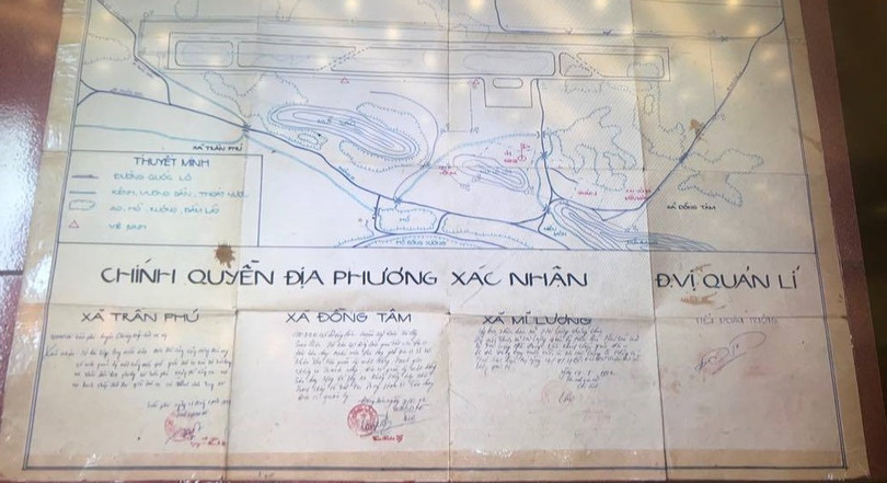| Bản đồ Đồng Tâm năm 1992 còn nguyên 57 cột bê tông xác định đất quốc phòng. |