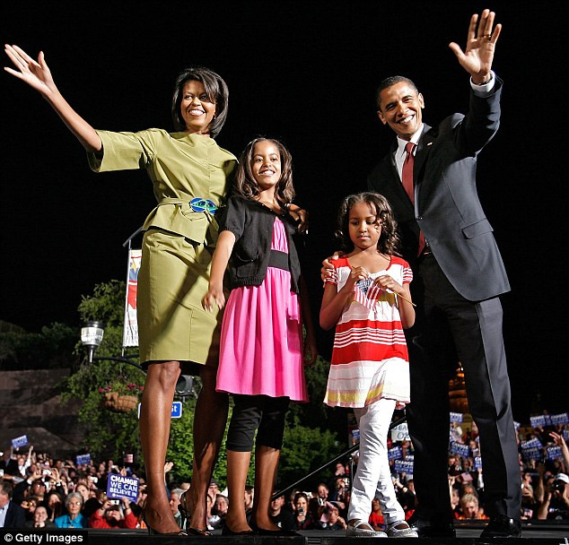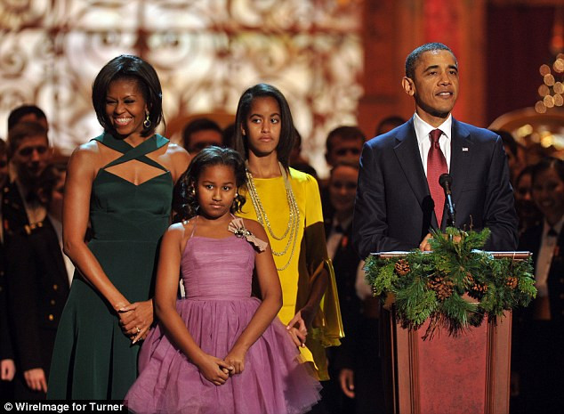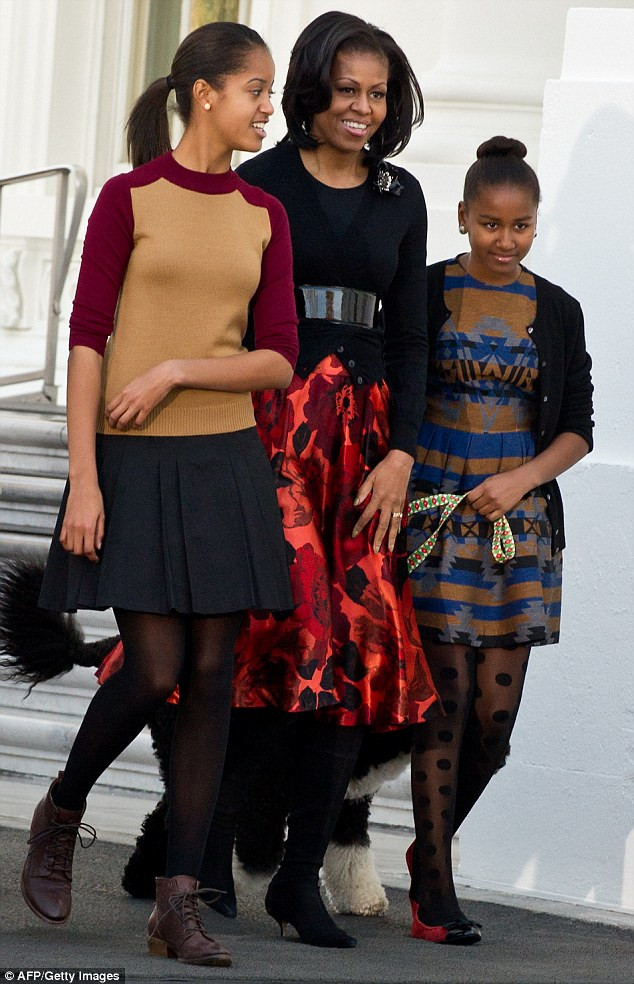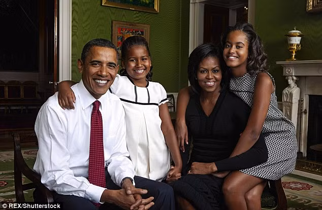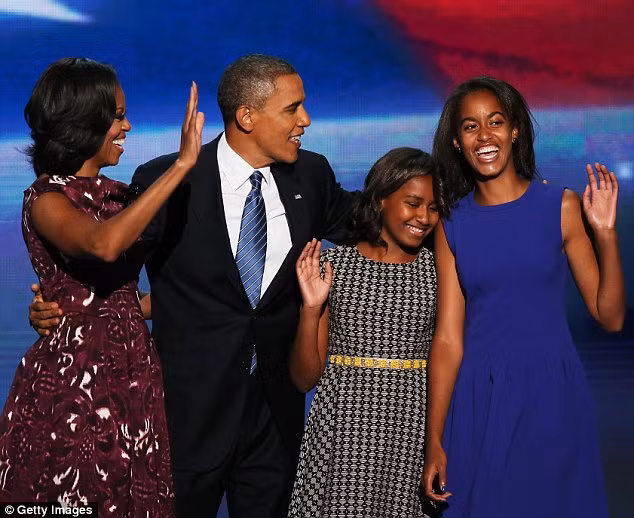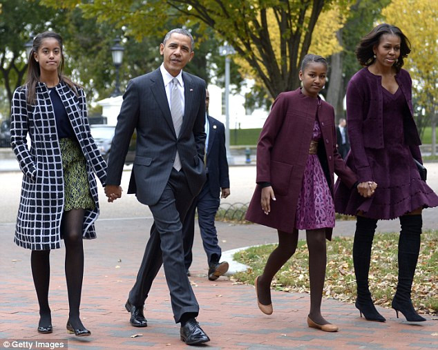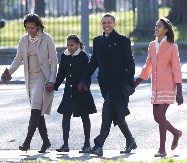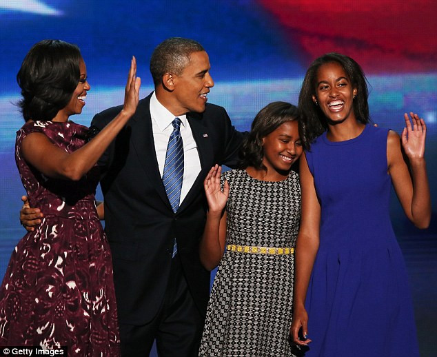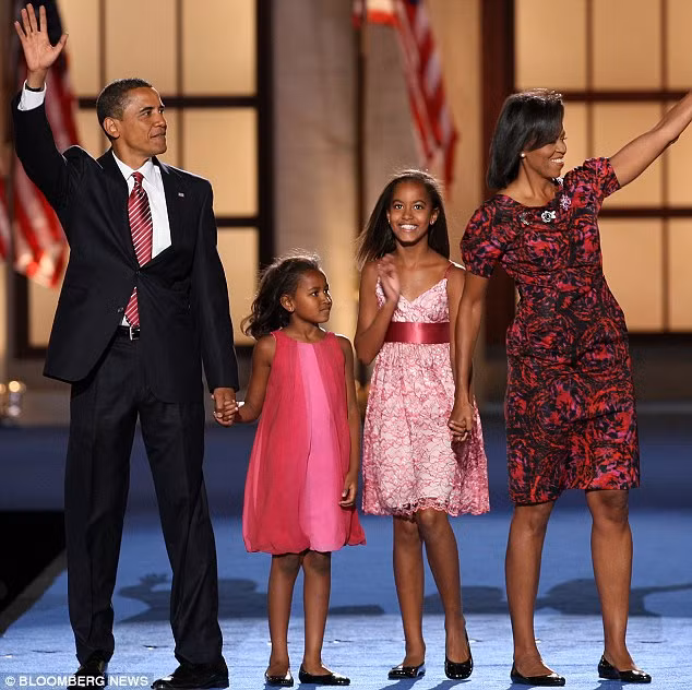 Sasha và Malia cùng vợ chồng tổng thống Obama năm 2013.