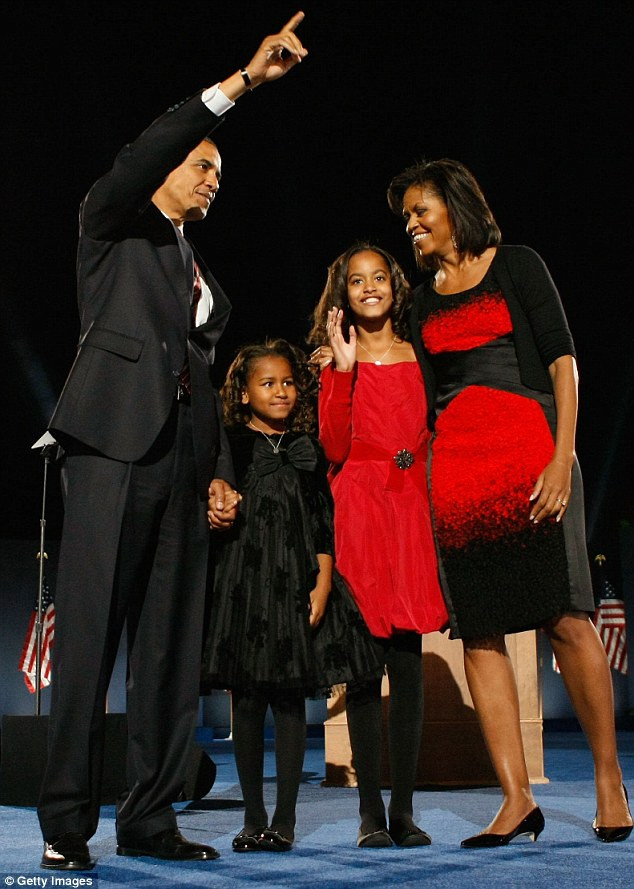 Cười lên nào! Sau khi thông tin ông Obama chính thức trở thành tổng thống thứ 44 của Hoa Kỳ, cả hai cô bé đều rất hân hoan và sẵn sàng cho bữa tiệc của gia đình.