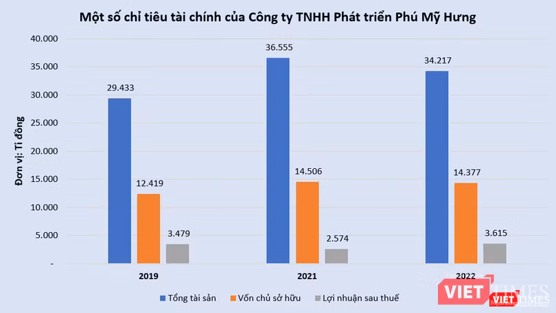 Tại ngày 31/12/2022, quy mô tổng tài sản của Phú Mỹ Hưng đạt khoảng 34.217 tỉ đồng, vốn chủ sở hữu ở mức 14.377 tỉ đồng.
