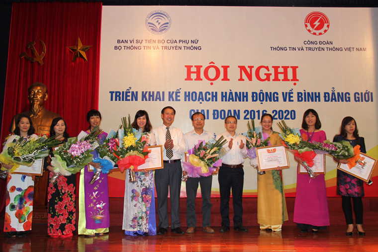Cũng nhân dịp này, Thứ trưởng Phan Tâm và Chủ tịch Công đoàn TT&TT Việt Nam đã trao tặng Bằng khen của Công đoàn TT&TT Việt Nam cho 9 tập thể và cá nhân có thành tích xuất sắc trong hoạt động tổ chức triển khai chương trình hành động về bình đẳng giới
