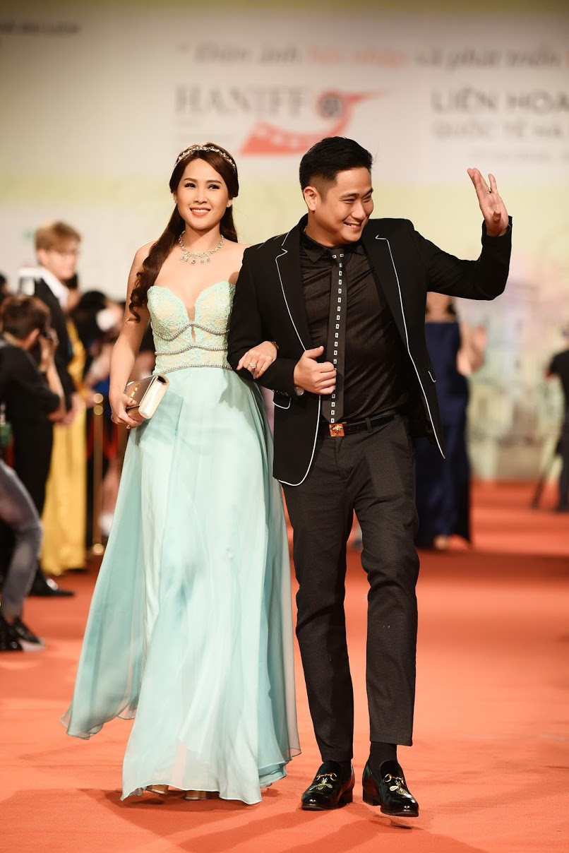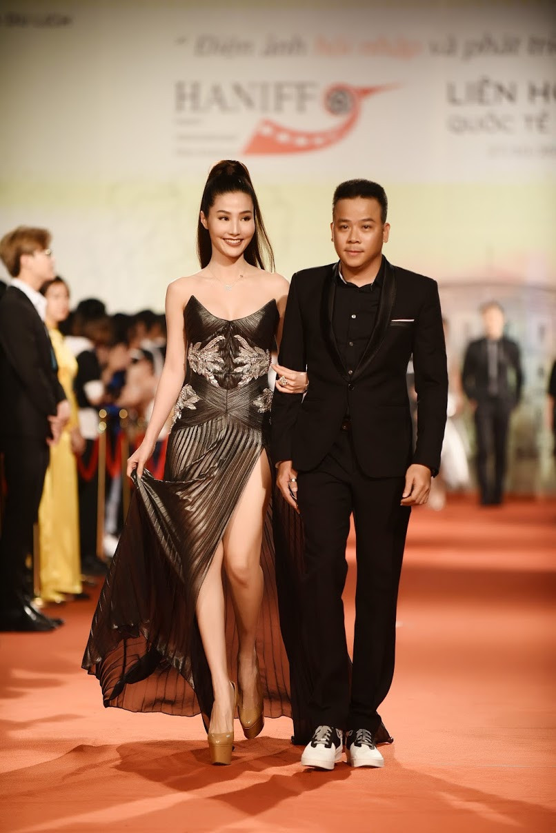 Diễm My 9x gây ấn tượng với mái tóc cột cao trong cá tính cùng bộ đầm xẻ cao táo bạo khoe đôi chân thon nuột nà của mình. Trên sân khấu trao giải Nam diễn viên chính xuất sắc trong hạng mục phim dài, Diễm My 9x chia sẻ “Đây là lần đầu My tham dự HANIFF và My cảm thấy vô cùng xúc động, vinh dự khi được đứng bên cạnh nhà diễn thuyết – nam diễn viên xuất sắc người Srilanka Dodantenna Thumindu.