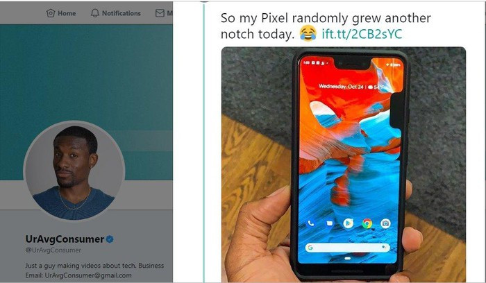 Ngày 29/10 vừa qua, một số người dùng Pixel 3 XL đã bất ngờ khi điện thoại của mình gặp lỗi "mọc" thêm "tai thỏ" ở cạnh bên màn hình như thế này: