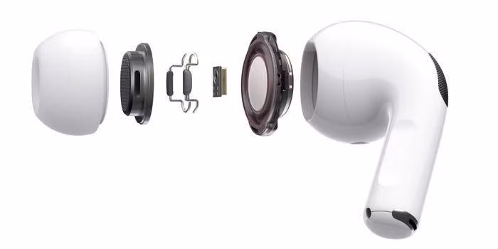 AirPods Pro trang bị tính năng “adaptive EQ” tự động điều chỉnh nhạc theo hình dạng tai để mang lại trải nghiệm nghe nhạc phong phú. AirPods thường không có.