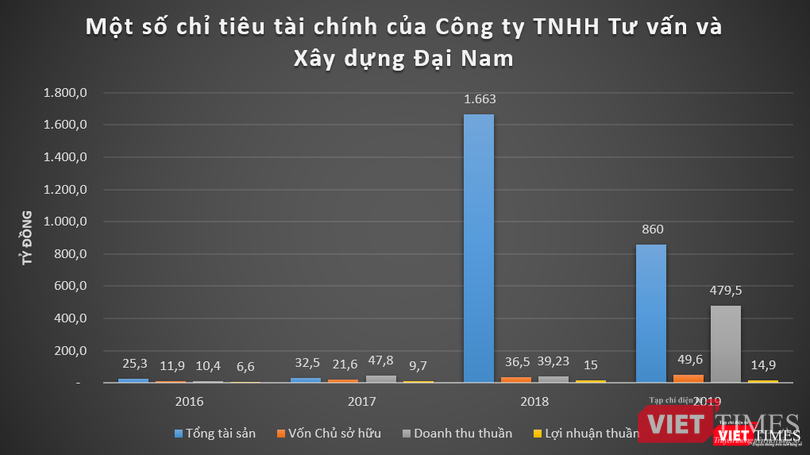 Tính đến cuối năm 2019, tổng tài sản của Xây dựng Đại Nam đạt 860 tỷ đồng, giảm 48% so với thời điểm đầu năm; vốn chủ sở hữu ở mức 49,6 tỷ đồng, tăng trưởng 35%.