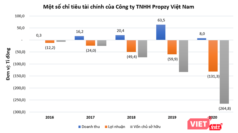 Khi đại dịch Covid-19 bùng phát, doanh thu của Propzy Việt Nam giảm mạnh, chỉ còn 8 tỉ đồng trong khi khoản lỗ ròng tăng vọt lên mức 131,3 tỉ đồng. Tới cuối năm 2020, vốn chủ sở hữu của công ty này âm 264,8 tỉ đồng.