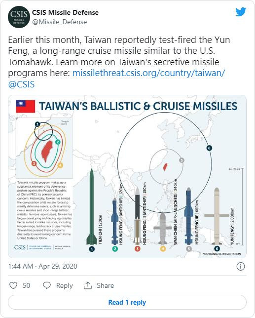 “Su Tzu-yun, chuyên gia phân tích kỳ cựu đến từ Viện Nghiên cứu Quốc phòng và An ninh, nói rằng tên lửa này có thể được sử dụng để làm suy yếu khả năng chiến đấu của Trung Quốc”, theo một bài viết đăng trên tờ Taiwan News. “Tên lửa này được tin là có thể tấn công các mục tiêu chiến lược như sân bay, cảng và các căn cứ đầu não đặt ở trung tâm Trung Quốc.”