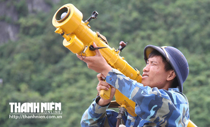 Chiến sĩ thuộc lực lượng Phòng không Hải quân đang ngắm bắn mục tiêu