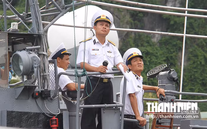 Chỉ huy Phòng không Hải quân (bìa phải) trong buổi huấn luyện
