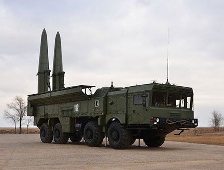 Vũ khí tiến công chủ yếu của Lục quân Nga là các hệ thống tên lửa chiến dịch-chiến thuật Iskander-M với tên lửa mới có tầm bắn 500 km, độ chính xác 10 m. Tên lửa bay theo quỹ đạo phi đường đạn có cơ động cường độ cao và sử dụng các phương tiện đối phó điện tử, nhờ đó mà các phương tiện phòng không không thể đánh chặn tên lửa.
