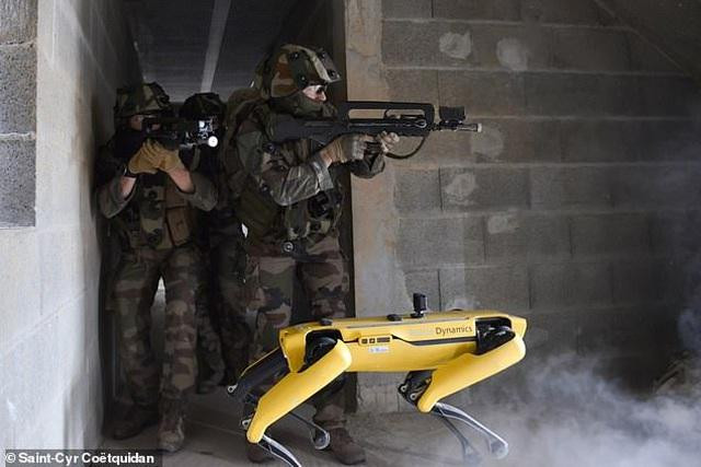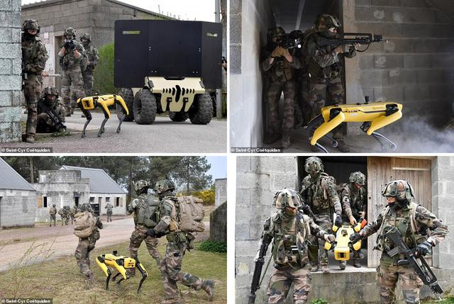 Trong loạt ảnh mới được đăng tải bởi Học viện quân sự Saint-Cyr, Pháp cho thấy robot Spot được binh lính sử dụng trong những màn tập trận.