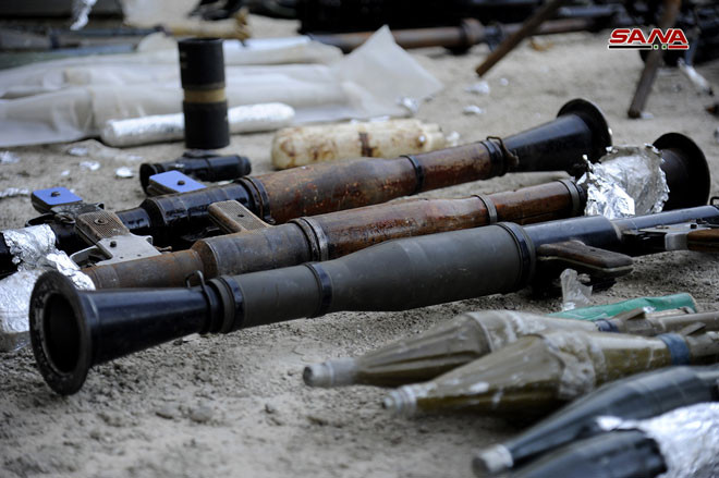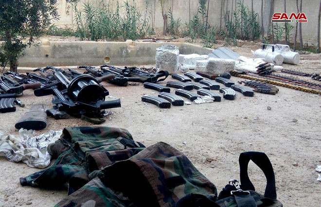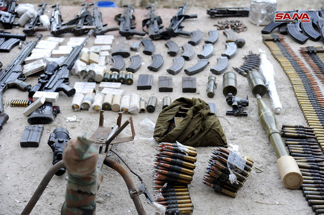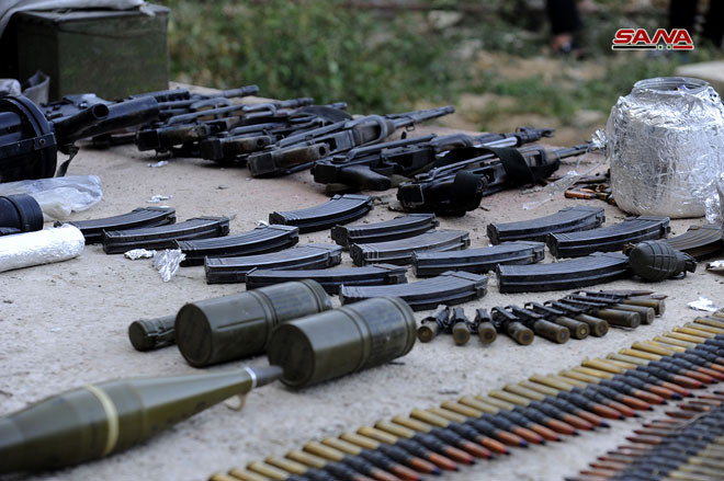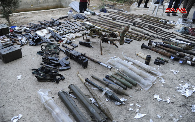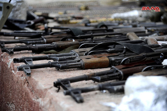 Lực lượng an ninh quân đội Syria thu giữ một số lượng lớn vũ khí của Al-Qaeda Syria trên vùng ngoại ô Damascus