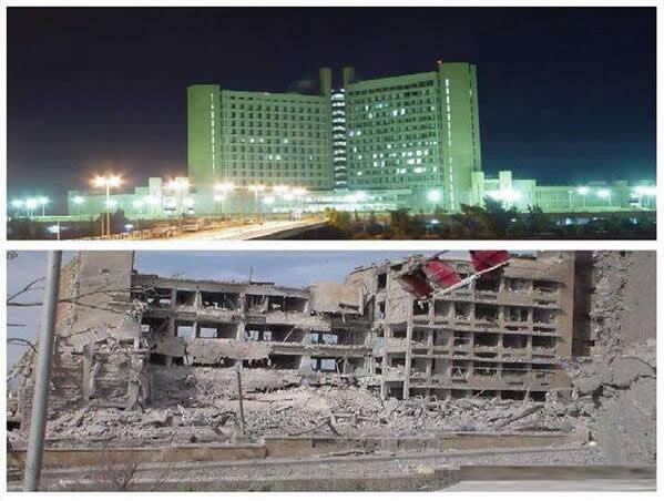 Bệnh viện Al- Kindi là một cơ sở y tế công lập lâu đời nhất và lớn nhất của Syria, sau cuộc chiến thảm khốc kéo dài từ 20.12. 2013 kết thúc bằng vụ hành quyết hàng chục binh sĩ Syria bị bắt làm tù binh, bệnh viện ung thư Al-Kindi bị đánh sụp hoàn toàn bởi lực lượng thánh chiến, chỉ còn lại đống đổ nát không thể phục hồi.
