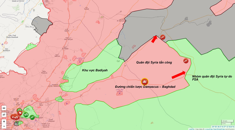 VietTimes -- Ngày 08.05.2017, quân đội Syria bắt đầu cuộc tấn công quy mô lớn trên vùng nông thôn phía đông nam Damascus, đánh vào chiến tuyến của lực lượng Hồi giáo cực đoan Quân đội Syria tự do (FSA) do Jordanian hậu thuẫn dọc theo đường cao tốc Damascus-Baghdad.
