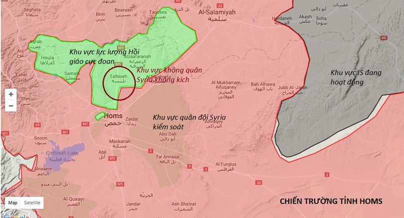 Không quân Syria ném bom trúng kho vũ khí và đạn dược của lực lượng Hồi giáo cực đoan tại làng Talbiseh, tấn công vào vị trí tập trung quân của của Fatah Al Sham Front (nguyên là Al - Nusra Front, chi nhánh Al Qaeda ở Syria) tại các làng Al Rastan và Deir Foul.