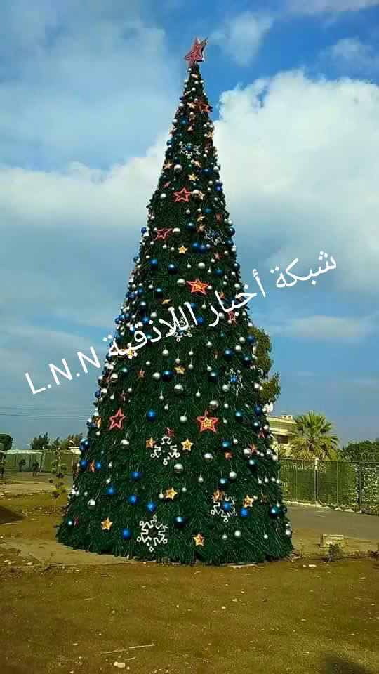 Cây thông Noel cao 12 m ở căn cứ sân bay Hmeymin