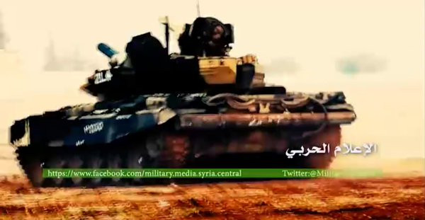 Xe tăng T-90, BMP, T-55 và pháo tự hành Gvozdika ở phía nam của Aleppo.