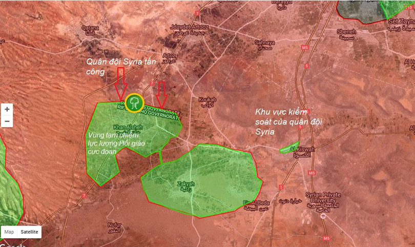Sau loạt trận chiến đấu ác liệt diễn ra trên khu vực phía đông thị trấn Khan Al-Sheih, các lực lượng vũ trang Syria triển khai lực lượng khống chế hỏa lực trên vùng Zuhair, đè bẹp các tay súng cực đoan Jabhat Fateh Al-Sham dưới hỏa lực chế áp các cỡ nòng của hỏa lực đi cùng các đơn vị vũ trang.