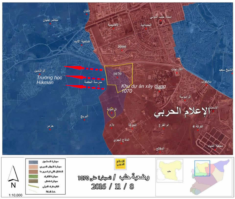 Sau khi đánh chiếm được Trường Hikmah, các lực lượng vũ trang Syria chuyển hướng tấn công ra ngoại vi quận Rashiddeen 5, nằm trên hướng nam trường Hikman – những tiếng nổ của đạn pháo đầu tiên bắt đầu trong khu vực này.
