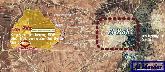Phối hợp cùng quân đội Syria, Lực lượng Dân chủ Syria, chủ lực là lực lượng dân quân người Kurd YPG cũng tổ chức tấn công đánh vào chiến tuyến của lực lượng Hồi giáo cực đoan, hỗ trợ quân đội Syria đột phá chiến tuyến của IS.