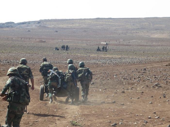 Dưới hỏa lực dữ dội của pháo binh hạng nặng, một số đơn vị quân đội Syria đang nỗ lực tiến công gần căn cứ không quân bị lực lượng Hồi giáo cực đoan đánh chiếm trên phần phía đông thị trấn nhỏ Masekah.