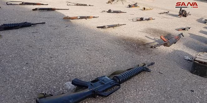 Phóng viên của SANA cho biết, quân đội Syria thu giữ một số lượng lớn vũ khí, trong đó một khẩu pháo 130mm, một khẩu pháo 57mm, nhiều súng cối và đạn, súng phóng lựu chống tăng và đạn RPG, súng trường bắn tỉa, súng trường tấn công M-16 do Mỹ chế tạo, tên lửa chống tăng cá nhân, súng máy 14.5mm, súng máy PKC, rất nhiều đạn dược các loại, mặt nạ phòng độc và máy dò mìn dành cho công binh.