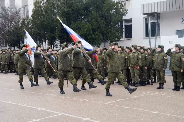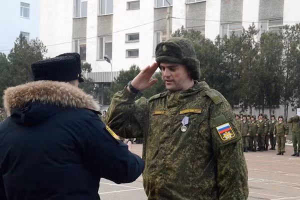 Các binh sĩ Hải quân đánh bộ, hoàn thành nhiệm vụ xuất sắc được thưởng huy chương ở Nga sau khi hoàn thành thời gian phục vụ nước ngoài.