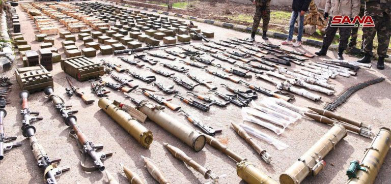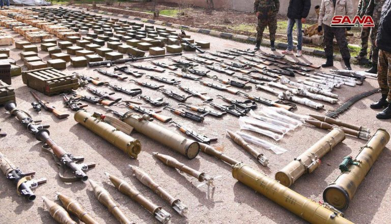 Theo hãng tin nhà nước Syria (SANA), trong chưa đầy một tháng, lực lượng an ninh và công binh phát hiện ra bốn kho vũ khí khổng lồ tại vùng nông thôn phía đông và phía tây tỉnh Daraa. Chỉ riêng kho vũ khí này đã có:
