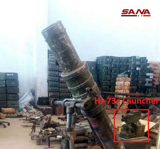 Trong kho vũ khí này, quân đội Syria phát hiện một số lượng lớn tên lửa TOW do Mỹ chế tạo, lựu đạn cầm tay có sức nổ mạnh do Israel chế tạo, tổ hợp tên lửa chống tăng có điều khiển Fagot do Pháp sản xuất... Bên cạnh đó còn có các tổ hợp tên lửa chống tăng có điều khiển HJ-73 (ATGM) của Trung Quốc, tổ hợp phóng tên lửa 107mm, hai súng phóng lựu chống tăng SPG -9 73mm, hàng chục súng máy hạng nhẹ và một số kính nhìn đêm, rất nhiều đạn dược, đạn phóng lựu chống tăng và chống bộ binh RPG, đạn cối các loại.