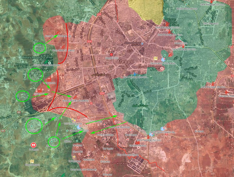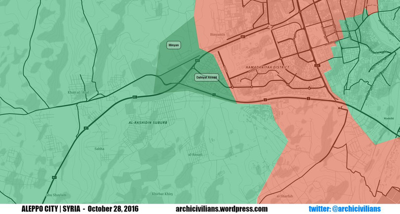 Không tính đến các thông tin quảng cáo và tuyên truyền từ hai phía, tình hình chiến sự ở khu vực phía Tây thành phố Aleppo sau ngày 28.10.2016 như sau: