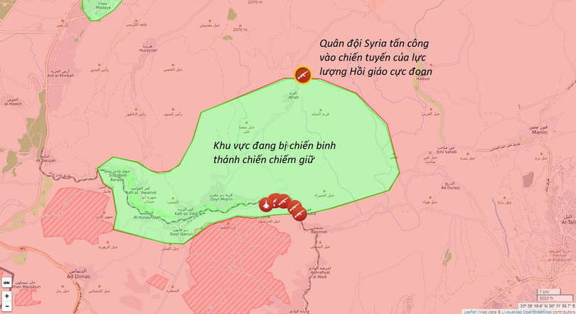 Các đơn vị vũ trang Syria, chủ lực là lữ đoàn 42 thuộc sư đoàn cơ giới số 4 tiến công từ các hướng ngoài thị trấn Ayn Al-Fijah đánh vào vòng xoáy Tahtani, có vị trí gần nhà máy xử lý nước sạch cung cấp cho thủ đô Damascus.