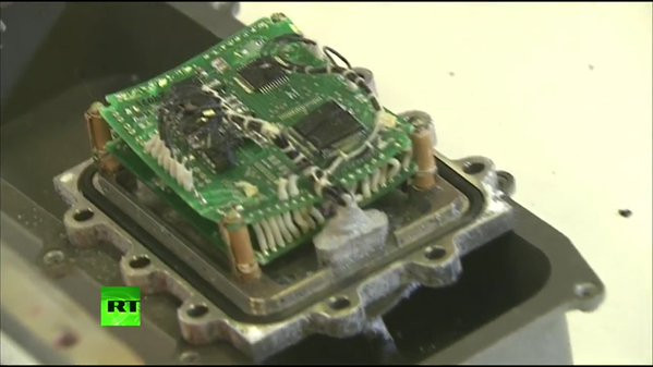 Mở mở hộp đen với các mô-đun bộ nhớ ghi lại chuyến bay Su-24. Bản mạch với các chip bị hư hỏng nặng.