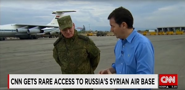 Một phần của máy bay IL-76MD đằng sau Thiếu tướng Igor Konashenkov trong cuộc phỏng vấn với CNN ở Syria.