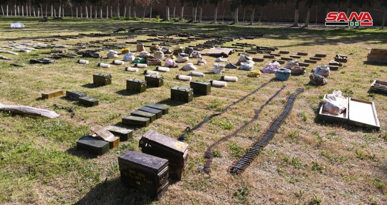 Lực lượng an ninh quân đội Syria cho biết, kho vũ khí phát hiện được bao gồm 3 tên lửa chống tăng có điều khiển TOW (ATGM) do Mỹ sản xuất, hai súng bắn tỉa hạng nặng Steyr HS .50 do Áo sản xuất, súng phóng lựu chống tăng M79 Osa do Nam Tư sản xuất, hai súng máy hạng nặng 14,5mm, hai súng cối 80mm, hàng chục súng phóng lựu RPG-7, rất nhiều đạn dược các cỡ nòng khác nhau.