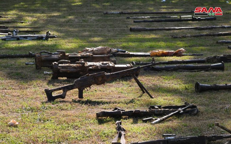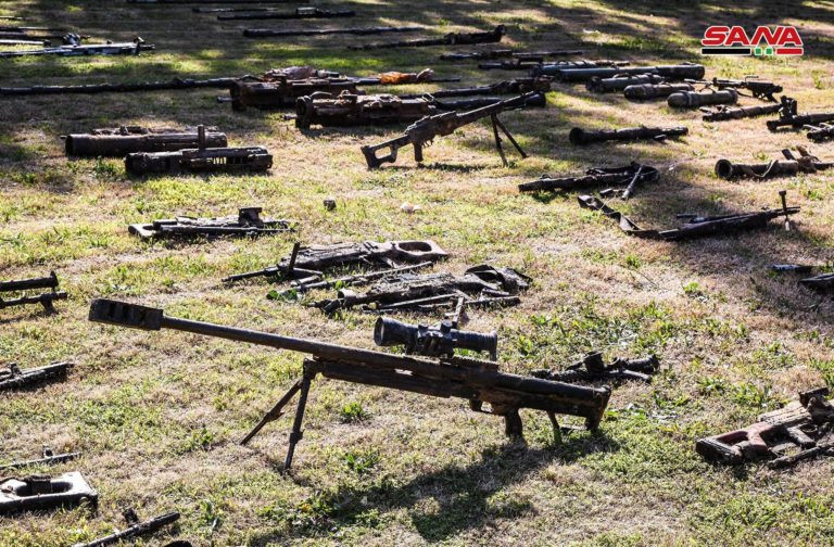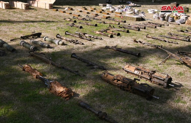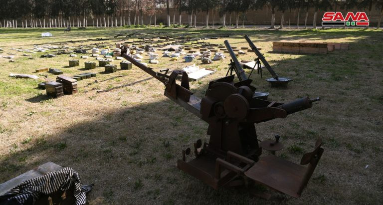 Những vũ khí trang bị thu được ở Đông Ghouta. Ảnh SANA